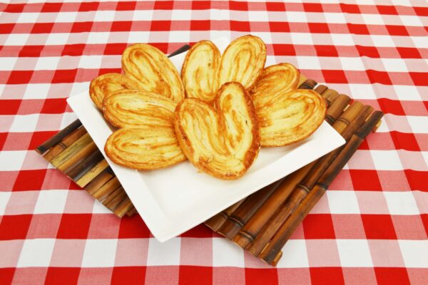 Hojaldre en forma de corazón de sabor dulce y crujiente.